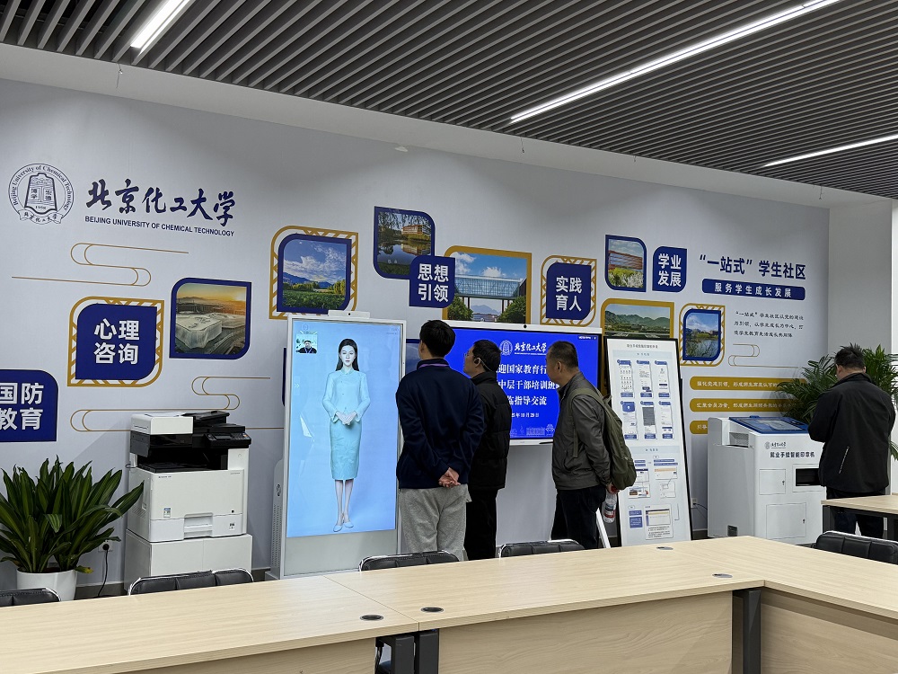 在北京化工大学,学员到大学生活动中心,依次走访创享商圈、学生空间、心理中心与辅导员发展中心,详细了解各功能区运行机制。在数字化智能教学未来中心、思政创新中心及第二教学楼智慧教学中心,工作人员系统展示了“数智”教育教学平台的架构理念、技术集成与推广应用情况,并通过现场演示,生动呈现人工智能、虚拟现实、增强现实等前沿技术在课程中的深度融合与创新实践,彰显信息技术赋能教育教学实效的显著成果。