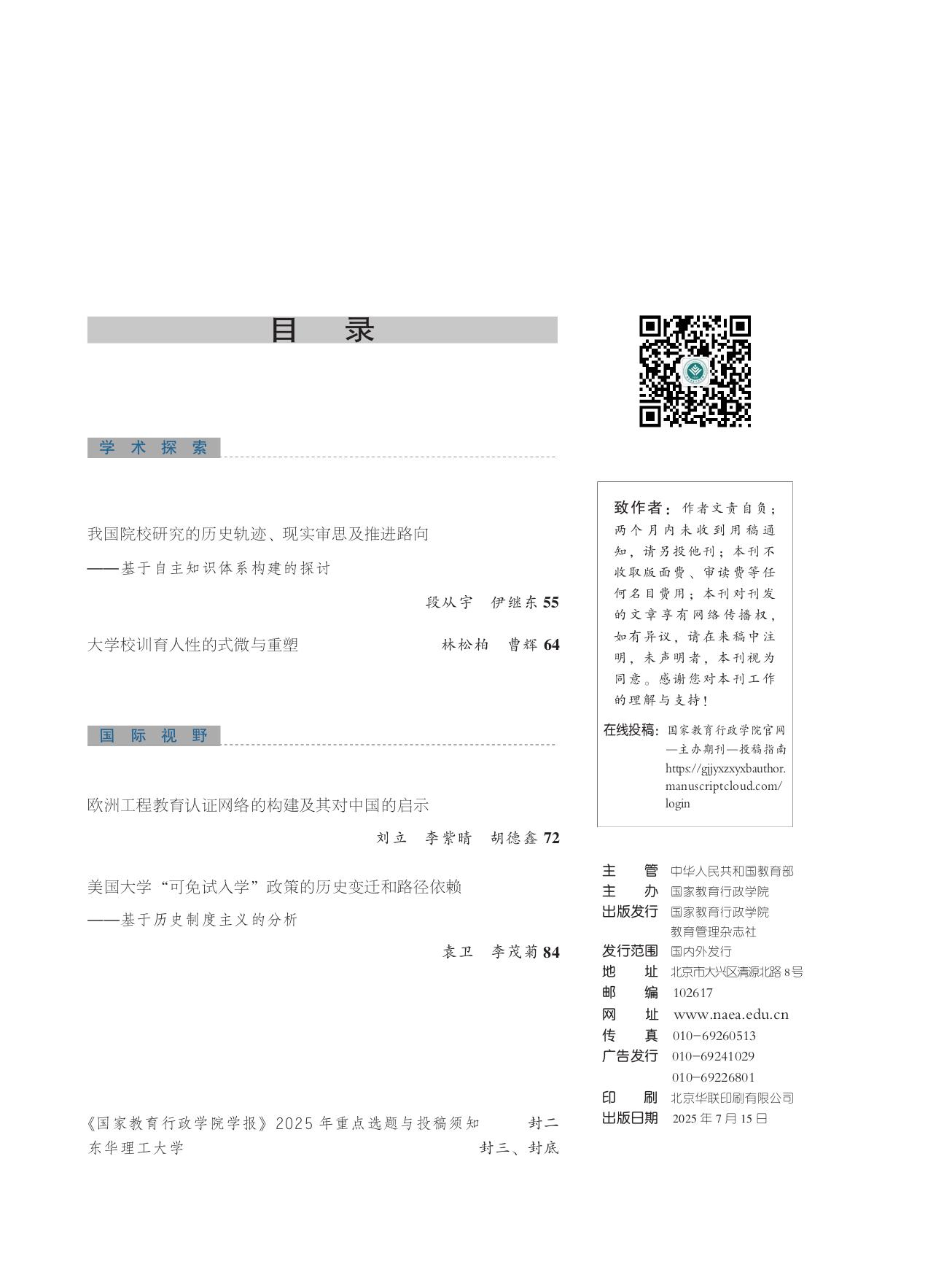 《国家教育行政学院学报》2025年第7期(总第331期)