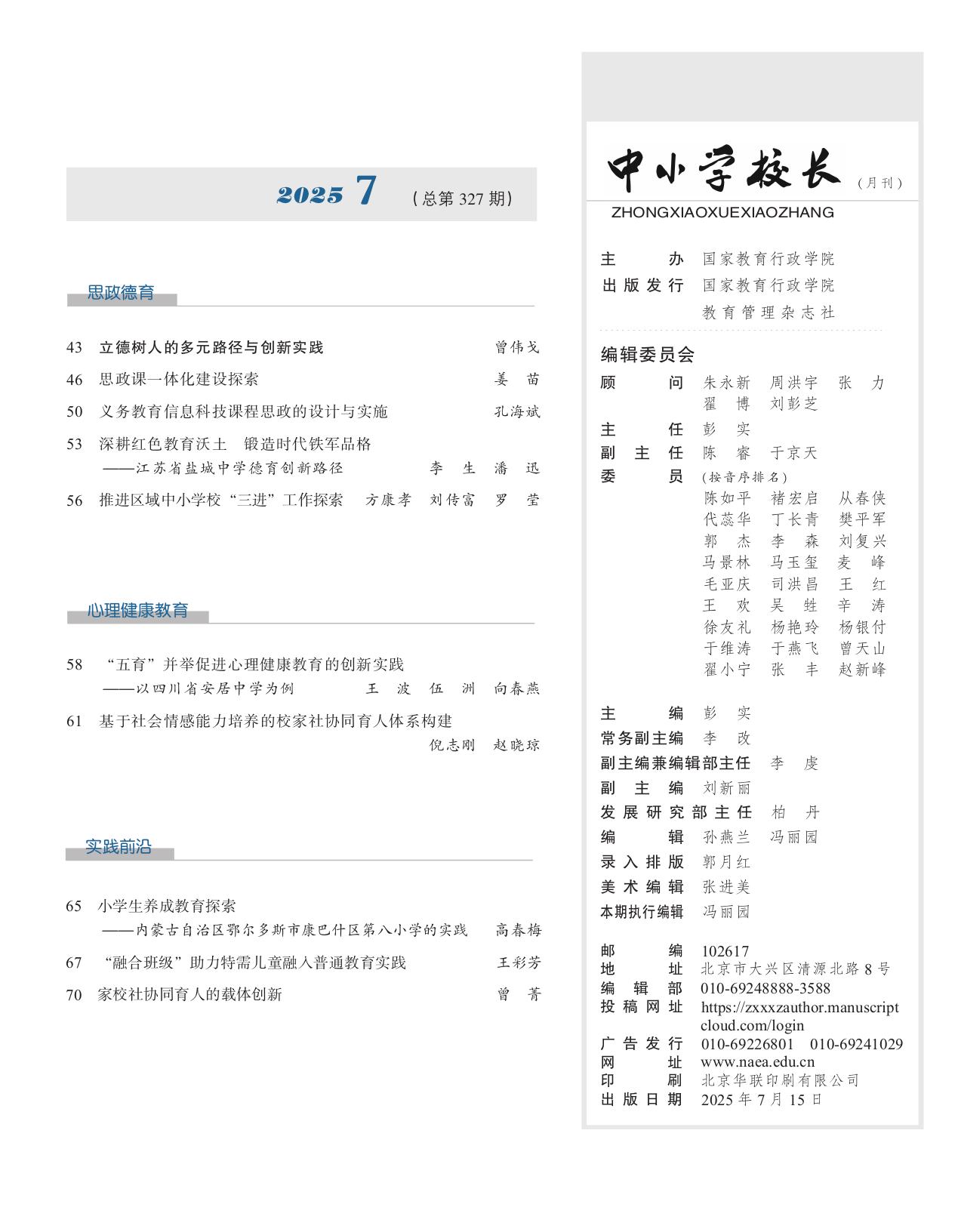 《中小学校长》2025年7期(总第327期)